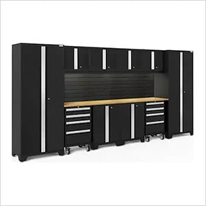 NewAge Garage Cabinets BOLD Series Black 12-Piece Set with Bamboo Top, Backsplash, LED Lights