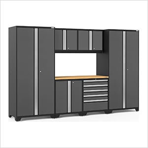 NewAge Garage Cabinets PRO Series Grey 7-Piece Set with Bamboo Top and LED Lights
