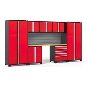 NewAge Garage Cabinets PRO Series Red 8-Piece Set with Bamboo Top and Slatwall