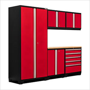 NewAge Garage Cabinets PRO Series Red 6-Piece Set with Bamboo Top