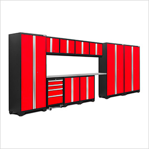 NewAge Garage Cabinets BOLD Series Red 12-Piece Set with Stainless Steel Top