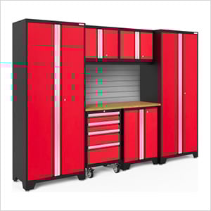 NewAge Garage Cabinets BOLD Series Red 7-Piece Set with Bamboo Top and Backsplash