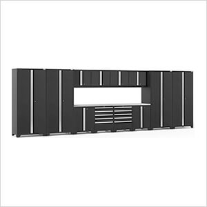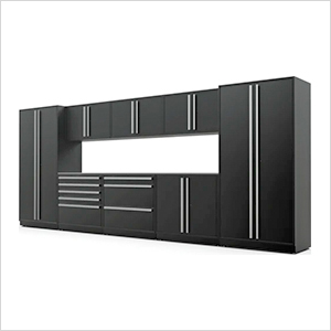 NewAge Garage Cabinets PRO Series Black 14-Piece Set with Stainless Steel Tops