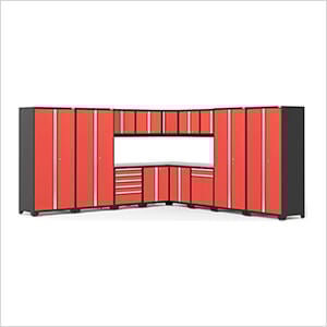 NewAge Garage Cabinets PRO Series Red 16-Piece Corner Set with Stainless Steel Tops