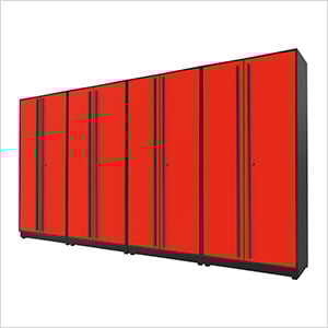 NewAge Garage Cabinets PRO Series Red 9-Piece Set with Stainless Steel Top, Slatwall and LED Lights