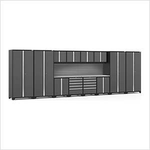 NewAge Garage Cabinets PRO Series Grey 14-Piece Set with Stainless Steel Tops and Slatwall