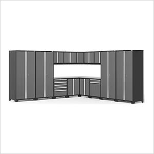 NewAge Garage Cabinets PRO Series Grey 16-Piece Corner Set with Stainless Steel Tops