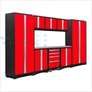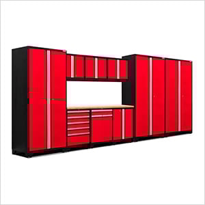 NewAge Garage Cabinets BOLD Series Red 10-Piece Set with Bamboo Top and Backsplash