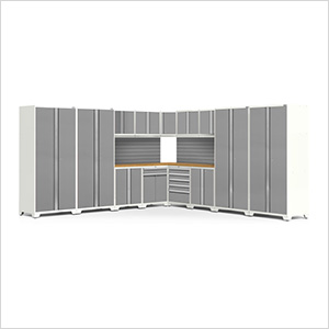 NewAge Garage Cabinets PRO Series Platinum 16-Piece Corner Set with Bamboo Tops and Slatwall