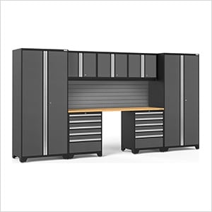 NewAge Garage Cabinets PRO Series Grey 8-Piece Set with Bamboo Top and Slatwall