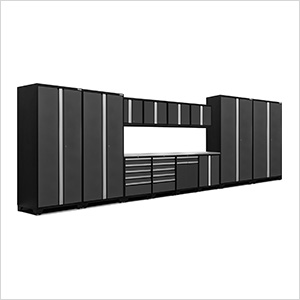 NewAge Garage Cabinets PRO Series Grey 14-Piece Set with Stainless Steel Tops and LED Lights