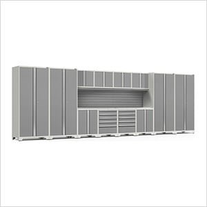 NewAge Garage Cabinets PRO Series Platinum 14-Piece Set with Stainless Steel Tops and Slatwall