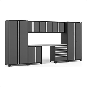 NewAge Garage Cabinets PRO Series Grey 8-Piece Set with Stainless Steel Top