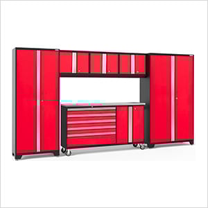Proslat Garage Cabinets 9-Piece Glossy Red Extra Tall Garage Cabinet Set with Black Handles
