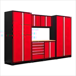NewAge Garage Cabinets PRO Series Red 7-Piece Set with Bamboo Top and LED Lights