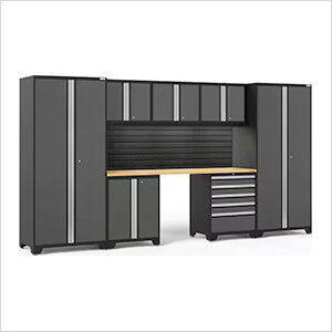 NewAge Garage Cabinets PRO Series Grey 8-Piece Set with Bamboo Top, Slatwall and LED Lights