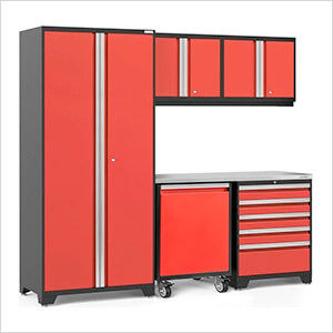 NewAge Garage Cabinets PRO Series Red 6-Piece Set with Stainless Steel Top