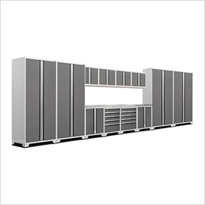 NewAge Garage Cabinets PRO Series Platinum 14-Piece Set with Stainless Steel Tops