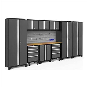 NewAge Garage Cabinets PRO Series Grey 10-Piece Set with Bamboo Top