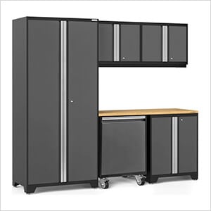 NewAge Garage Cabinets PRO Series Grey 6-Piece Set with Bamboo Top