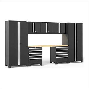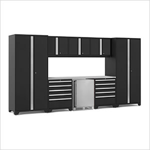NewAge Garage Cabinets PRO Series Black 9-Piece Set with Stainless Steel Top