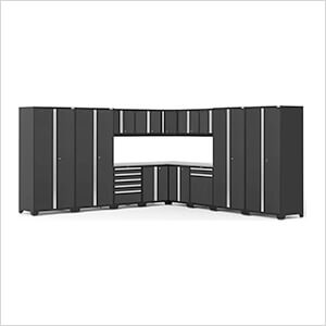 NewAge Garage Cabinets PRO Series Black 16-Piece Corner Set with Stainless Steel Tops