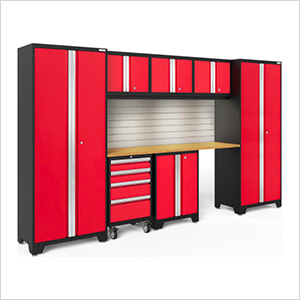 NewAge Garage Cabinets BOLD Series Red 8-Piece Set with Bamboo Top, Backsplash, LED Lights