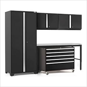 NewAge Garage Cabinets PRO Series Black 5-Piece Set with Stainless Steel Top