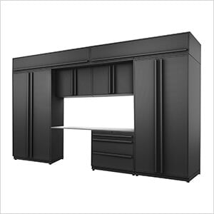 Proslat Garage Cabinets 9-Piece Mat Black Cabinet Set with Black Handles and Powder Coated Worktop