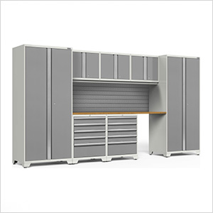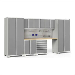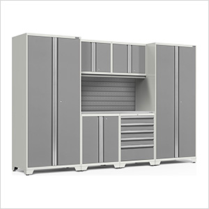 NewAge Garage Cabinets PRO Series Platinum 7-Piece Set with Stainless Steel Top and Slatwall