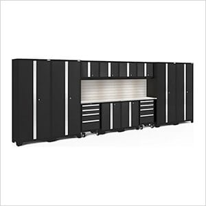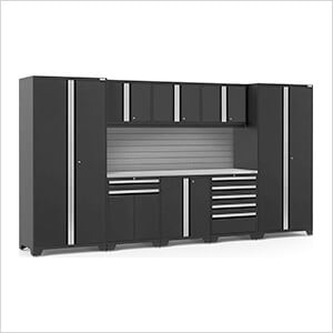 NewAge Garage Cabinets PRO Series Black 9-Piece Set with Stainless Steel Top and Slatwall