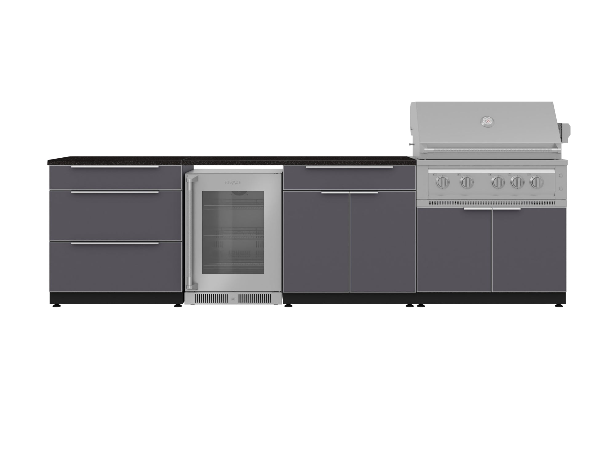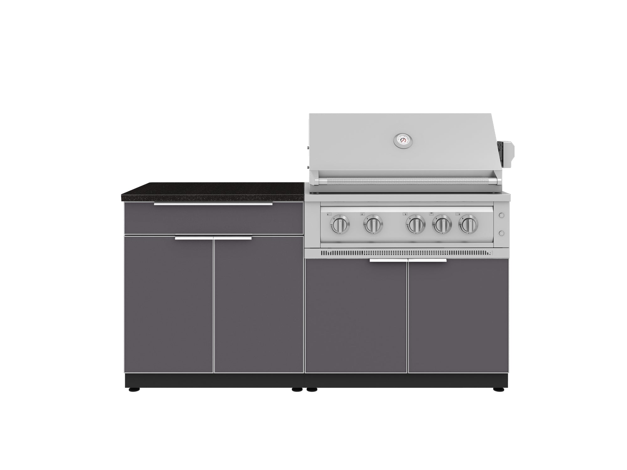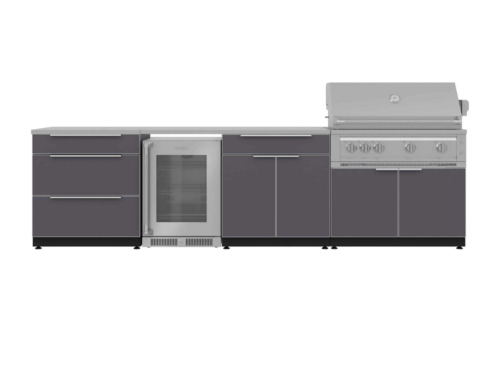 NewAge Outdoor Kitchens Aluminum 5-Piece Cabinet Set With 3 Drawer, Bar, Grill Cabinet, Platinum Grill and Countertop