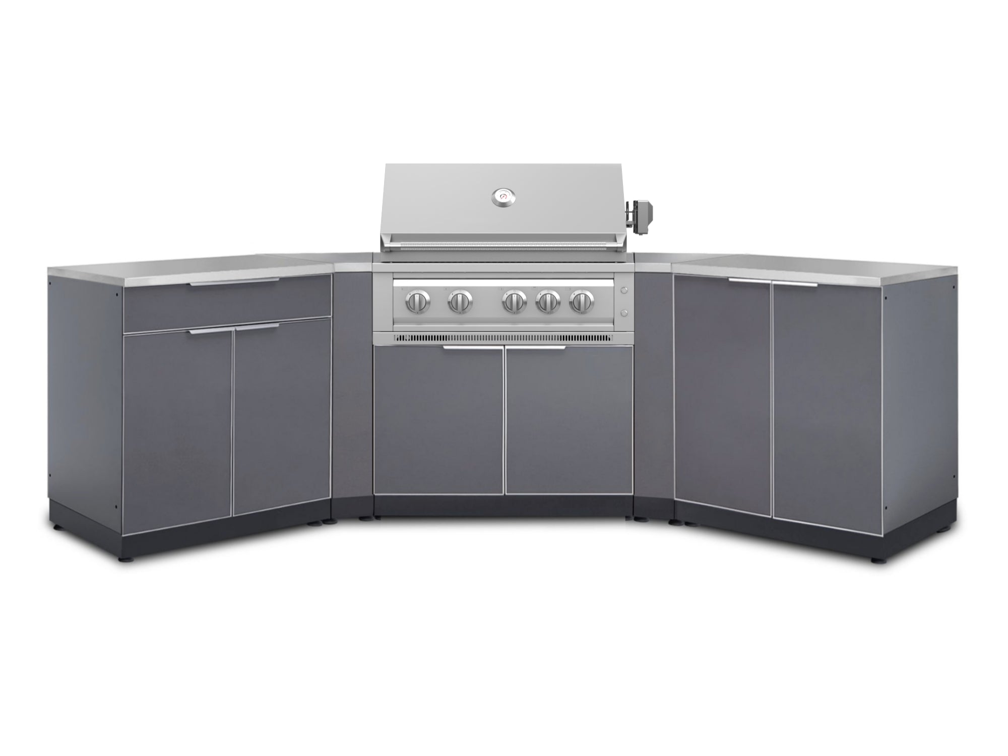 NewAge Outdoor Kitchens Aluminum 7-Piece Cabinet Set with 2 Door, Bar, Corner, Grill Cabinet, Platinum Grill, and Countertops