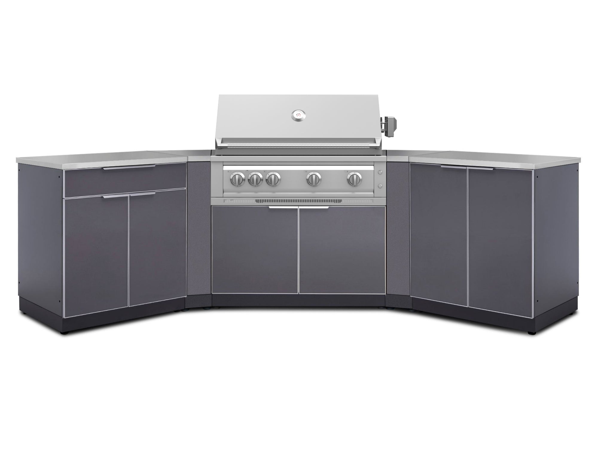 NewAge Outdoor Kitchens Aluminum 7-Piece Cabinet Set with 2 Door, Bar, Corner, Grill Cabinet, Platinum Grill, and Countertops