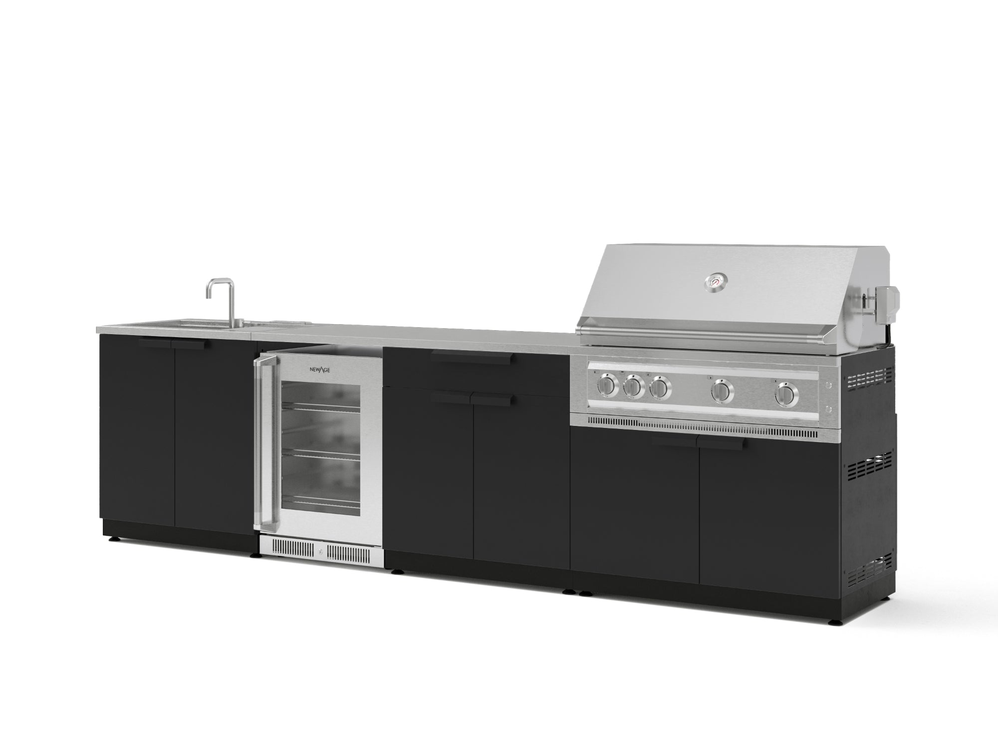 NewAge Outdoor Kitchens Aluminum 4-Piece Cabinet Set with Sink, Bar, Grill Cabinet and Fridge
