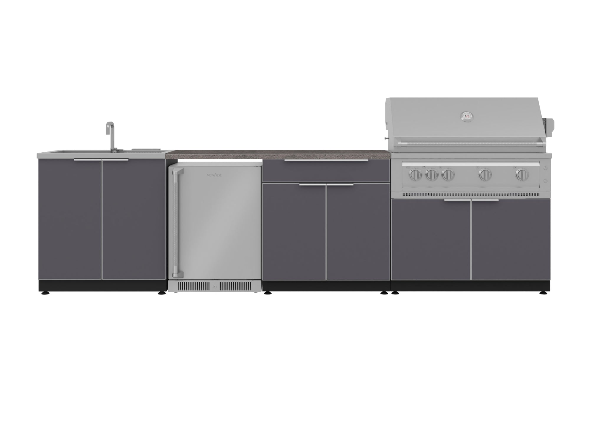 NewAge Outdoor Kitchens Aluminum 5-Piece Cabinet Set with Bar, Sink, Grill Cabinet, Platinum Grill, and Countertop
