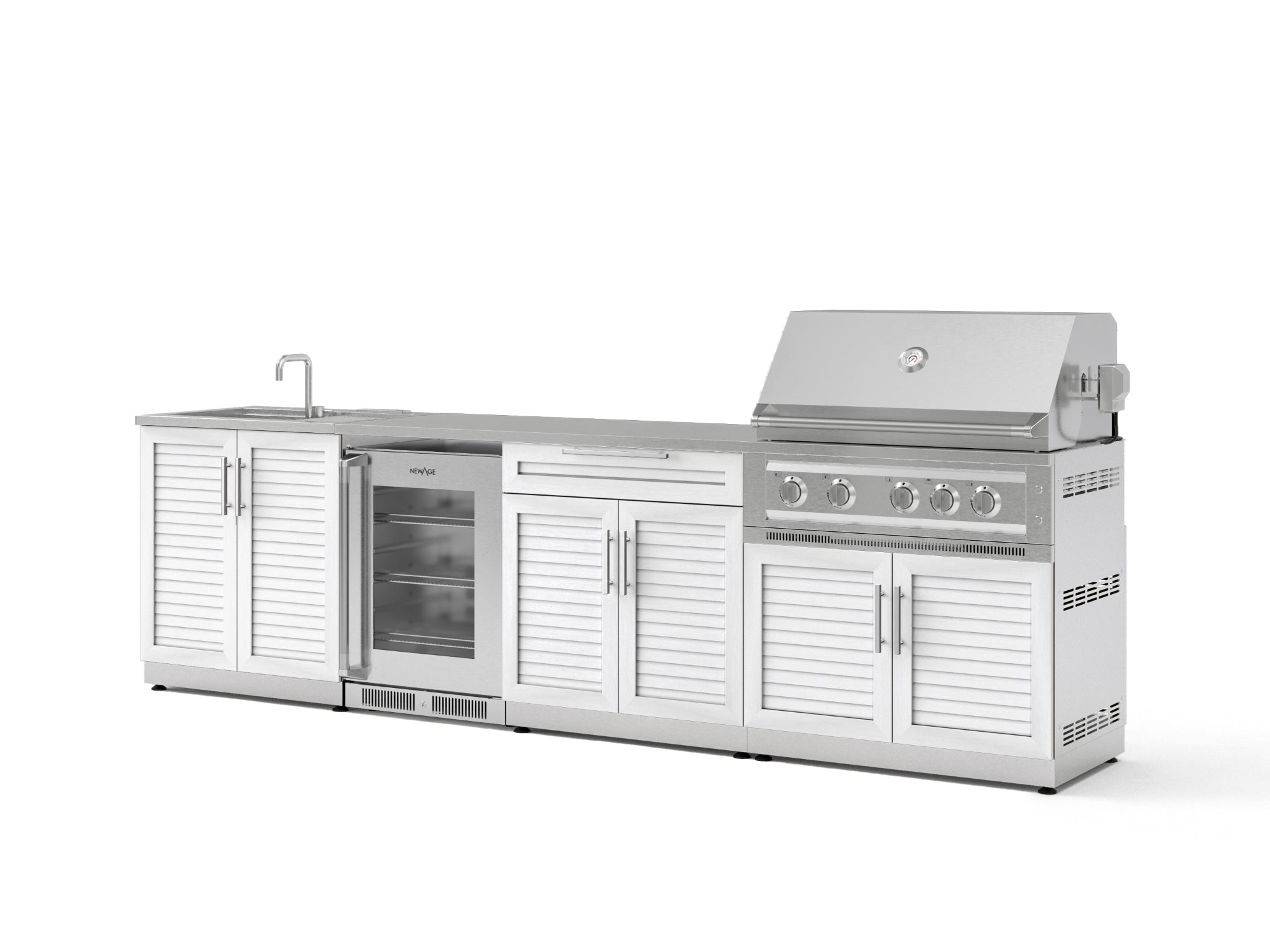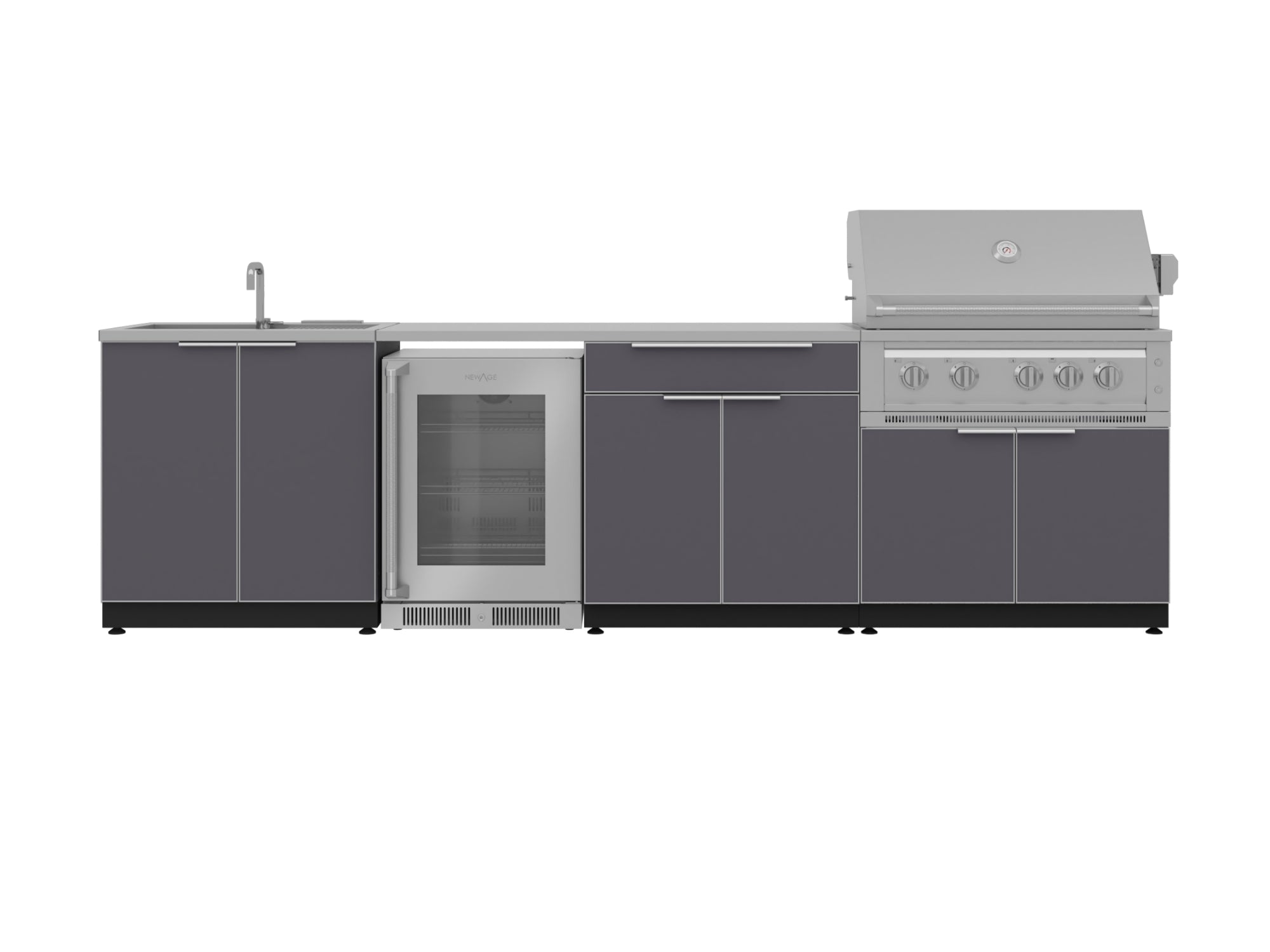 NewAge Outdoor Kitchens Aluminum 5-Piece Cabinet Set with Bar, Grill, Sink Cabinet, Performance Grill, and Countertop