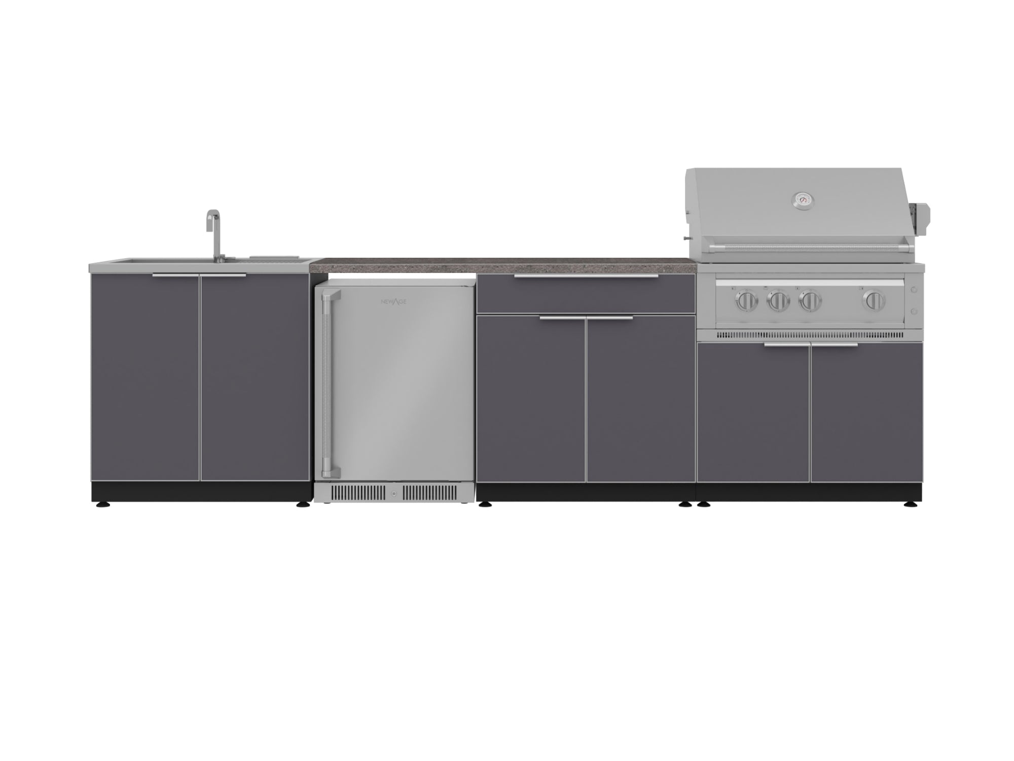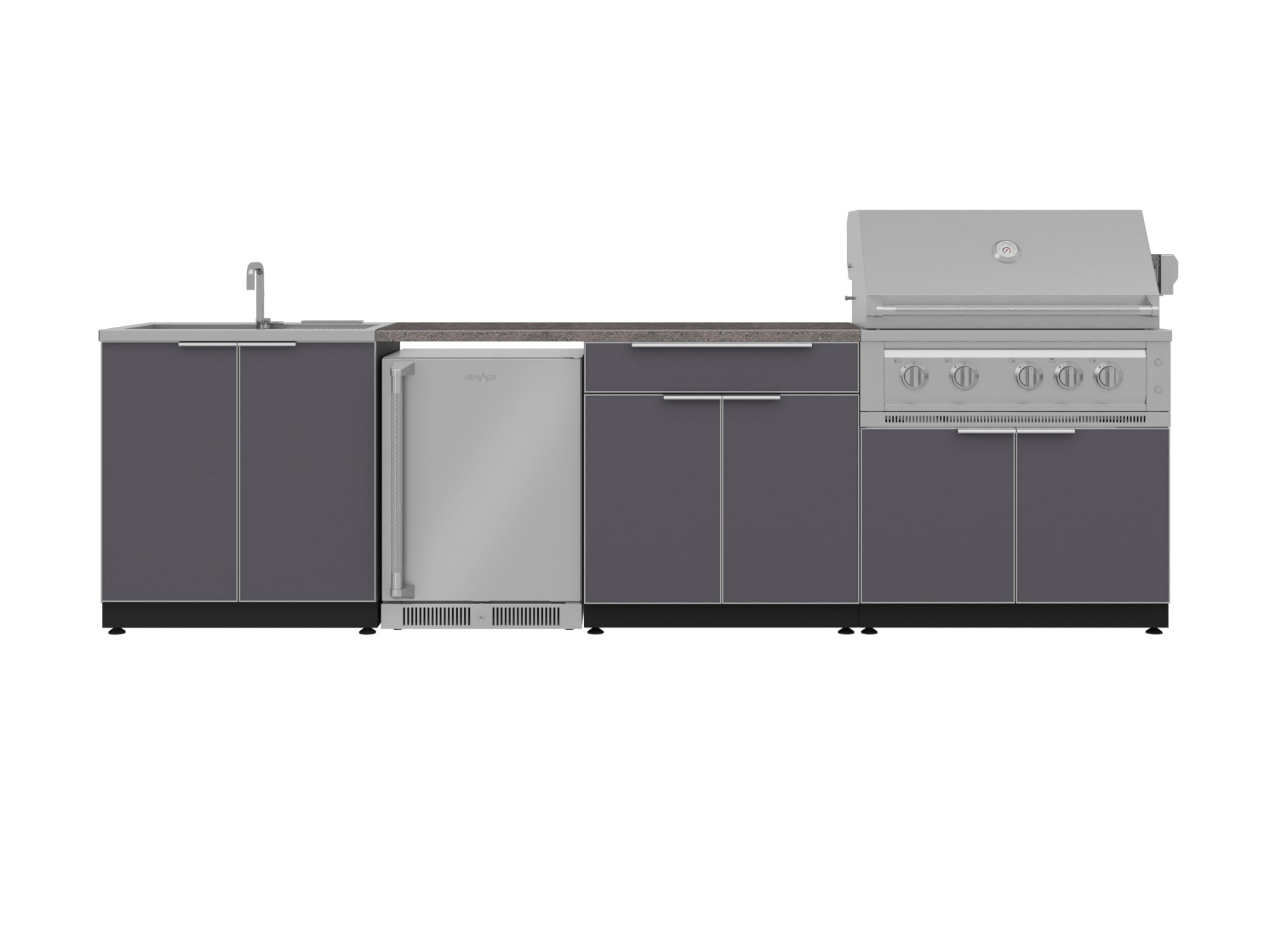 NewAge Outdoor Kitchens Aluminum 5-Piece Cabinet Set with Bar, Sink, Grill Cabinet, Platinum Grill, and Countertop