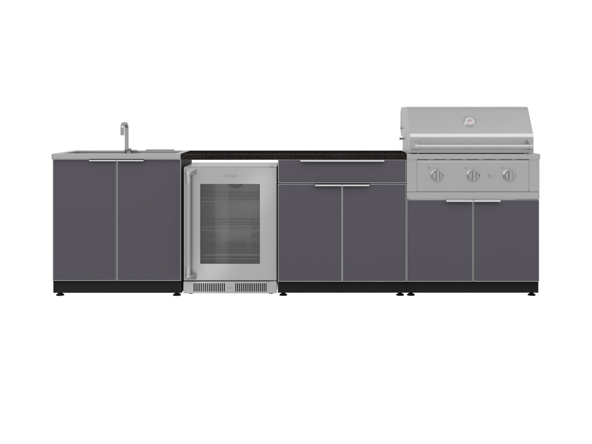 NewAge Outdoor Kitchens Aluminum 5-Piece Cabinet Set with Bar, Sink, Grill Cabinet, Platinum Grill, and Countertop