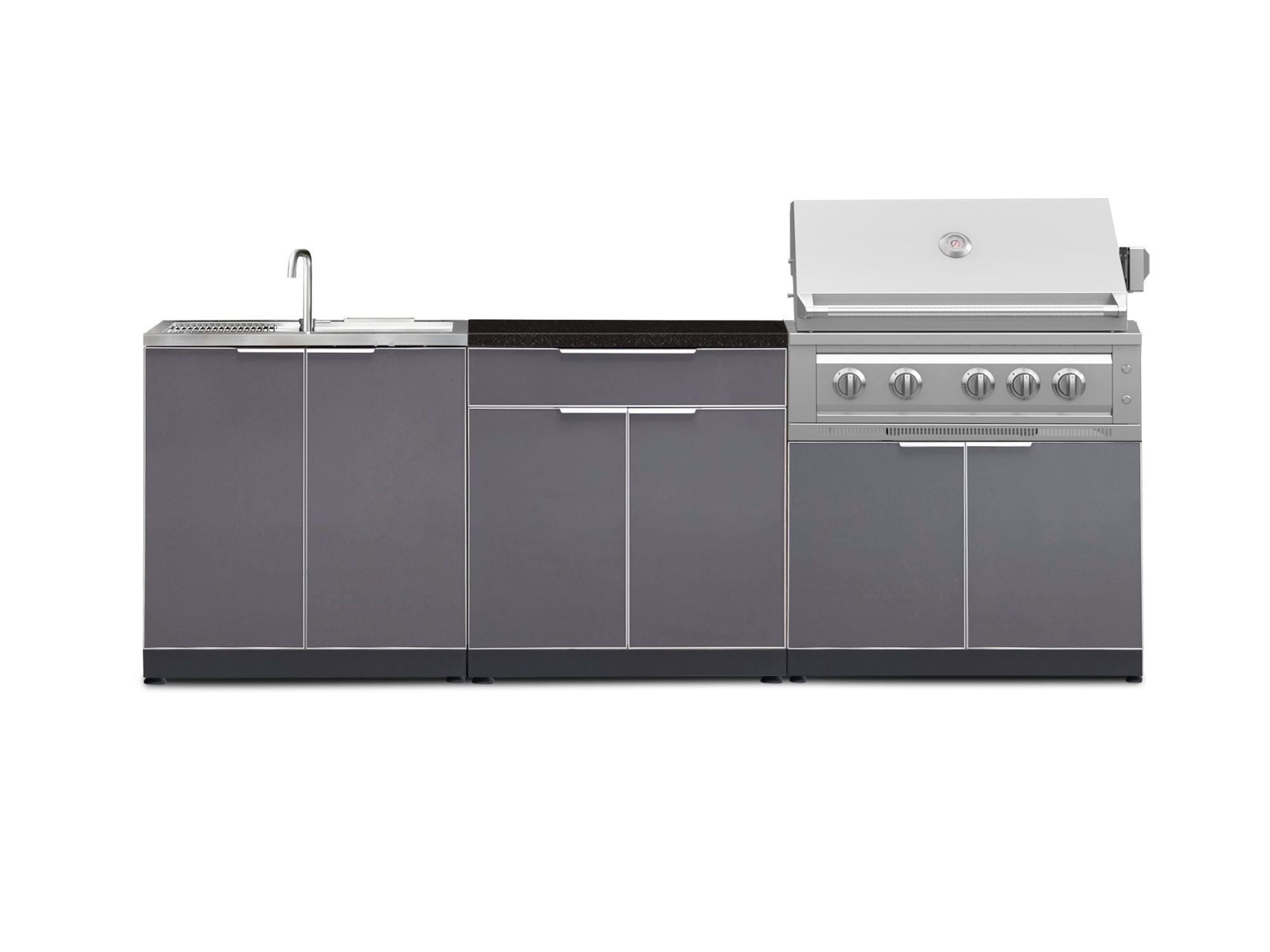 NewAge Outdoor Kitchens Aluminum 5-Piece Cabinet Set with Bar, Sink, Grill Cabinet, Platinum Grill, and Countertop