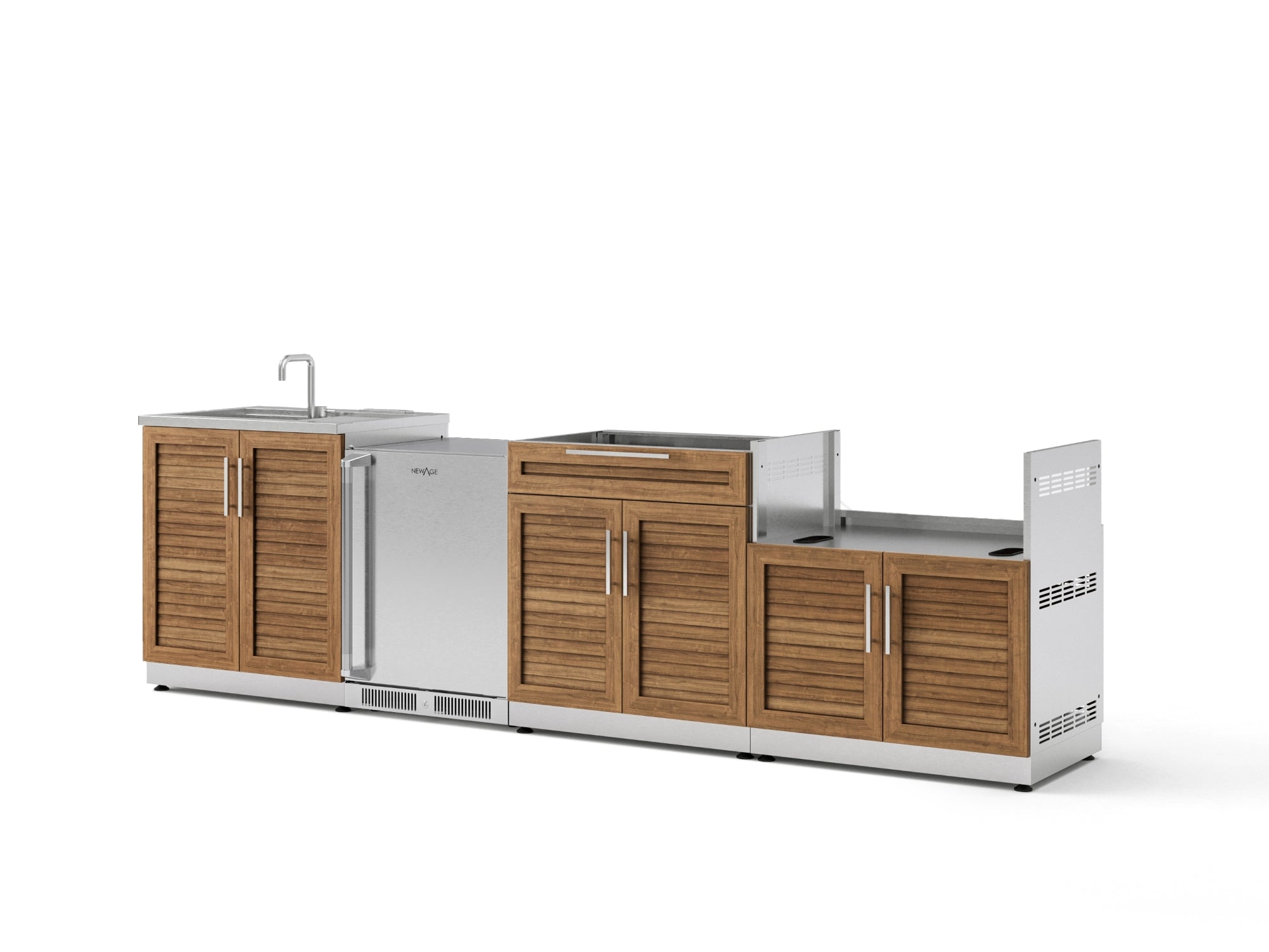 NewAge Outdoor Kitchens Stainless Steel 4-Piece Cabinet Set with Sink, Bar, Grill Cabinet and Fridge