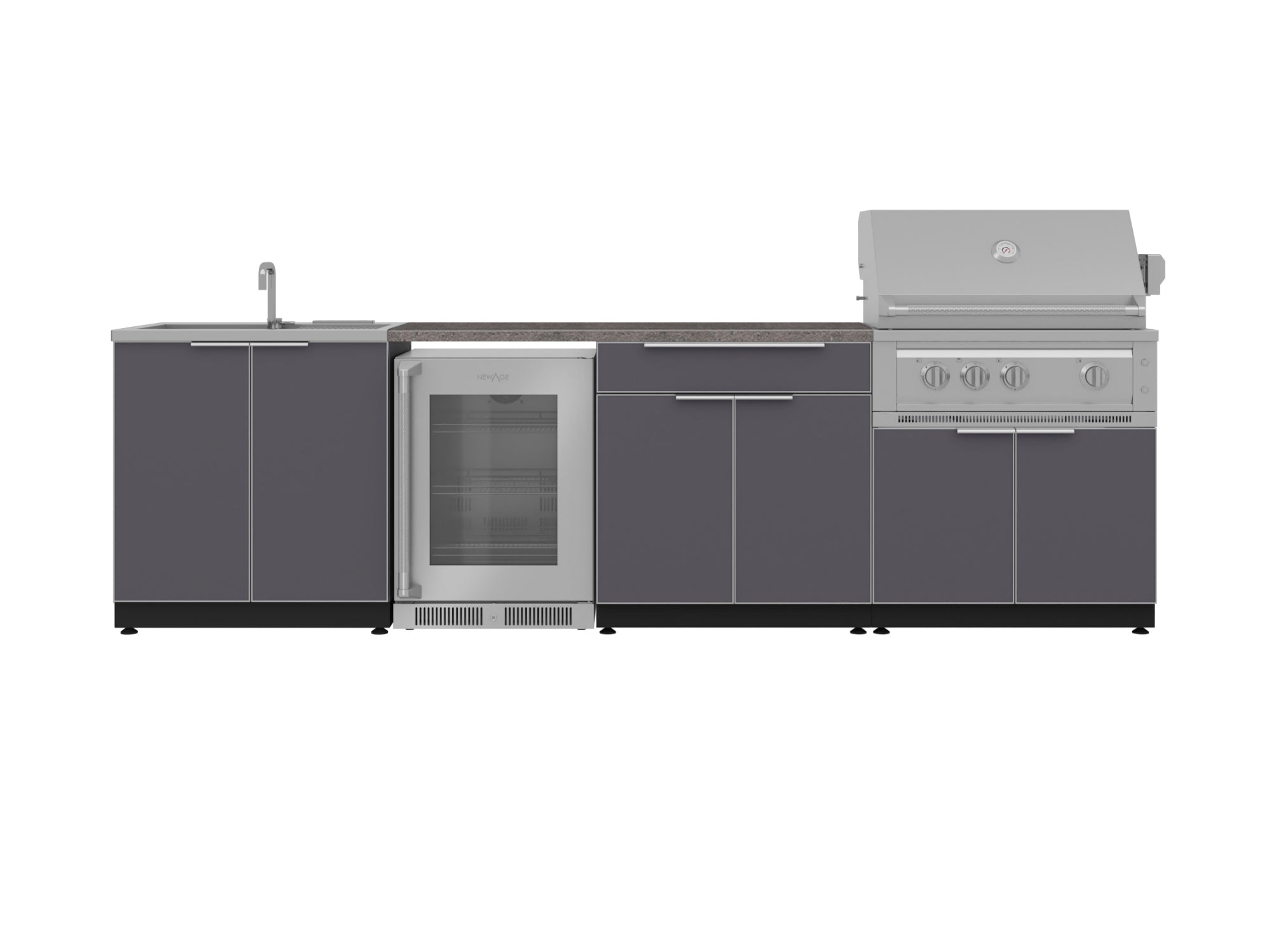 NewAge Outdoor Kitchens Aluminum 5-Piece Cabinet Set with Bar, Sink, Grill Cabinet, Platinum Grill, and Countertop