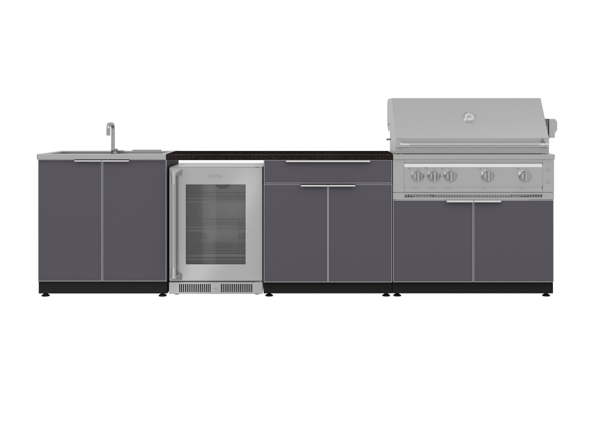 NewAge Outdoor Kitchens Aluminum 5-Piece Cabinet Set with Bar, Grill, Sink Cabinet, Performance Grill, and Countertop