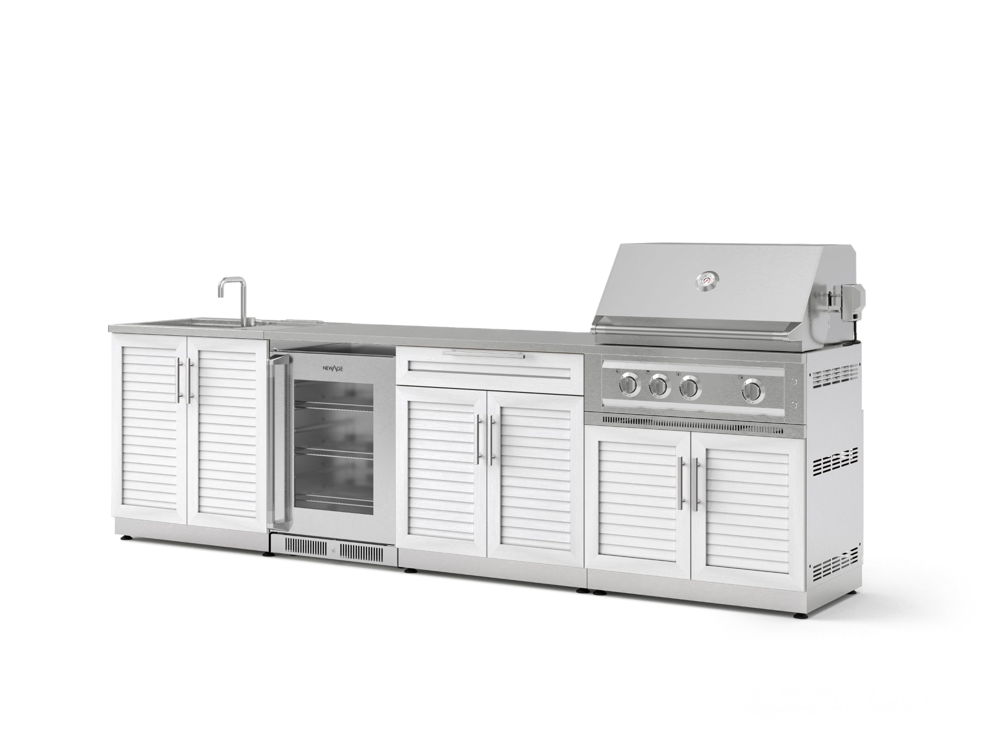 NewAge Outdoor Kitchens Aluminum 4-Piece Cabinet Set with Sink, Bar, Grill Cabinet and Fridge
