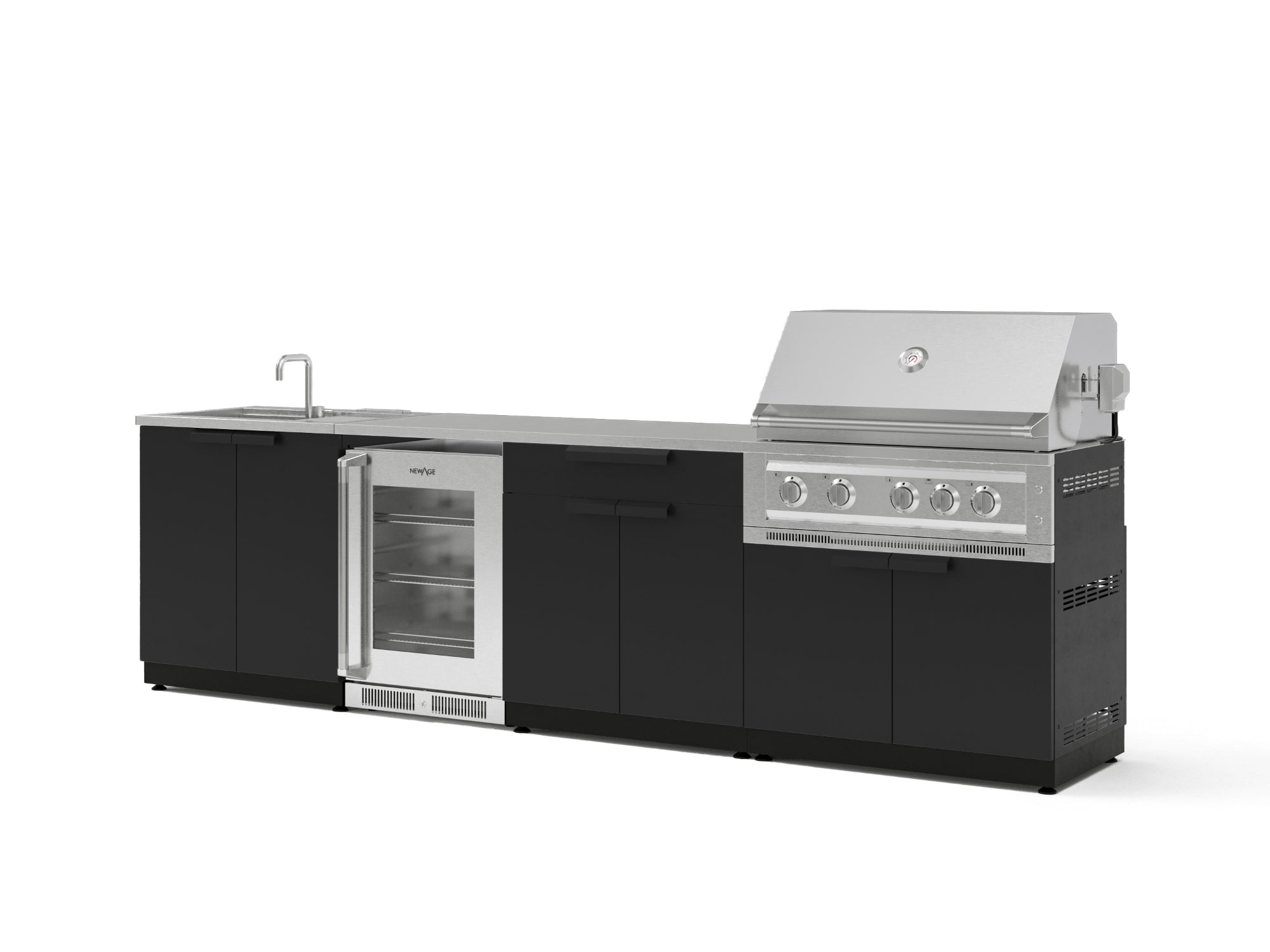 NewAge Outdoor Kitchens Aluminum 5-Piece Cabinet Set with Bar, Grill, Sink Cabinet, Performance Grill, and Countertop