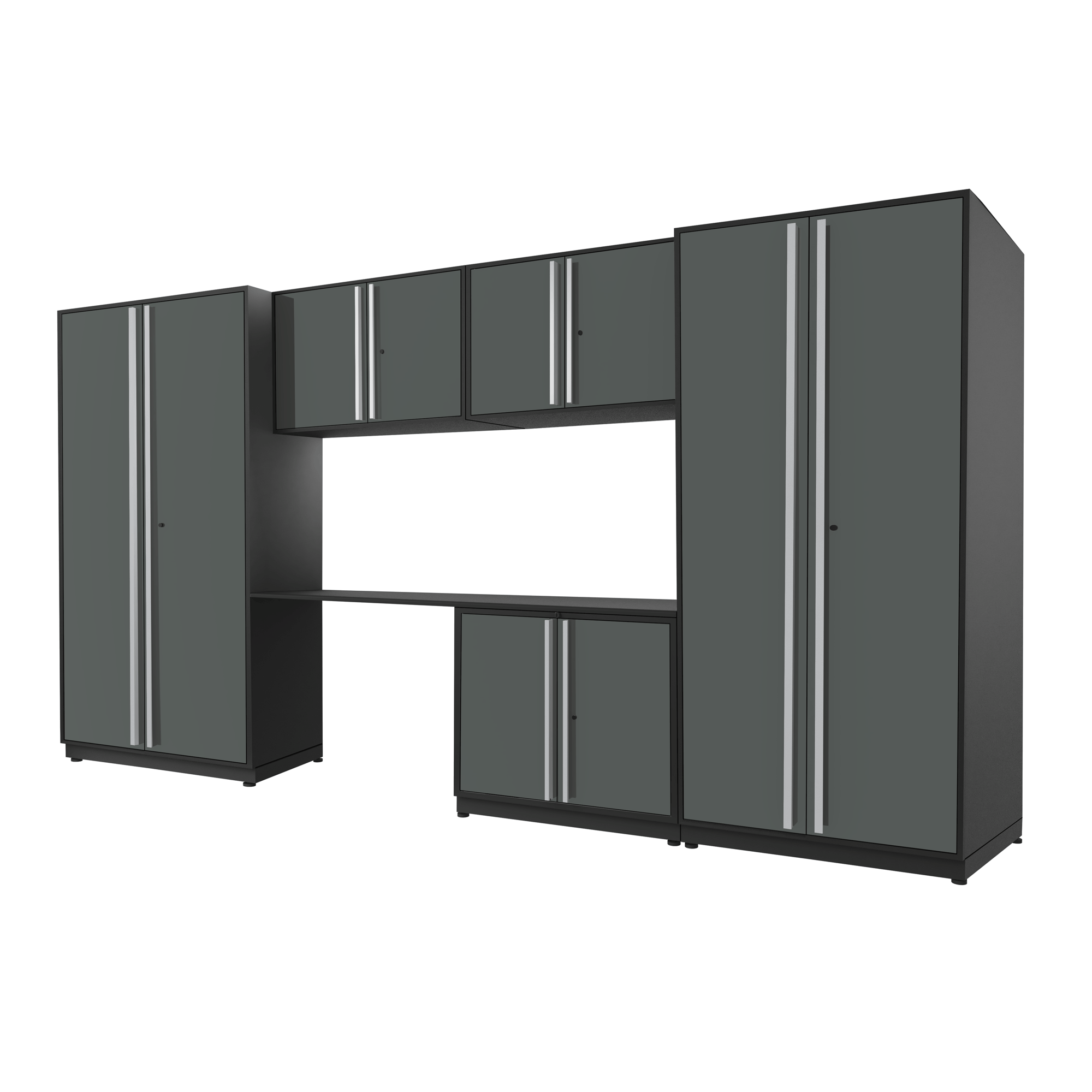 Armadillo Tough Grey 8-Piece Garage Cabinet Set with Levelers and Casters