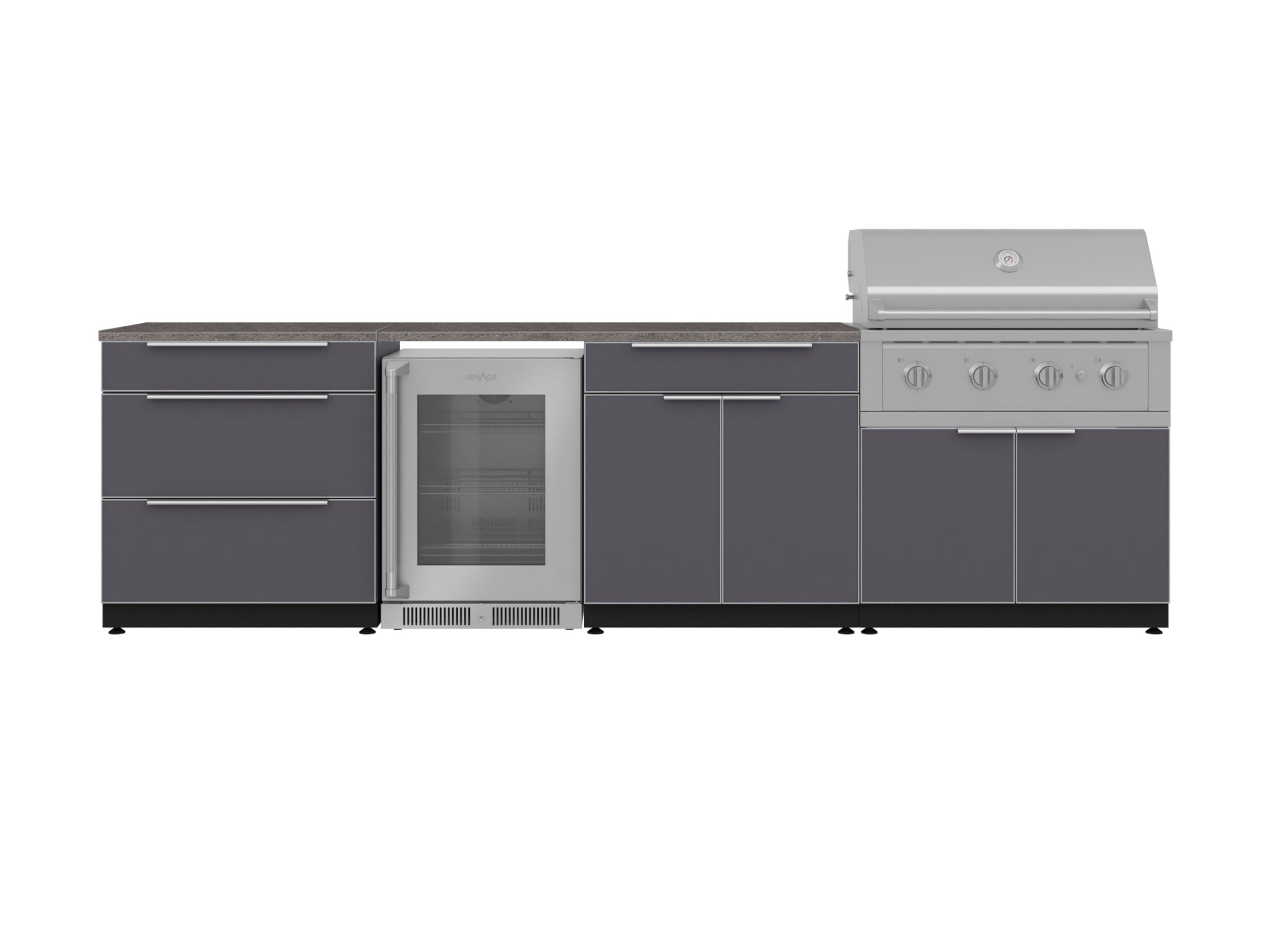 NewAge Outdoor Kitchens Aluminum 4-Piece Cabinet Set with 3 Drawer, Grill Cabinet, Performance Grill, and Countertop