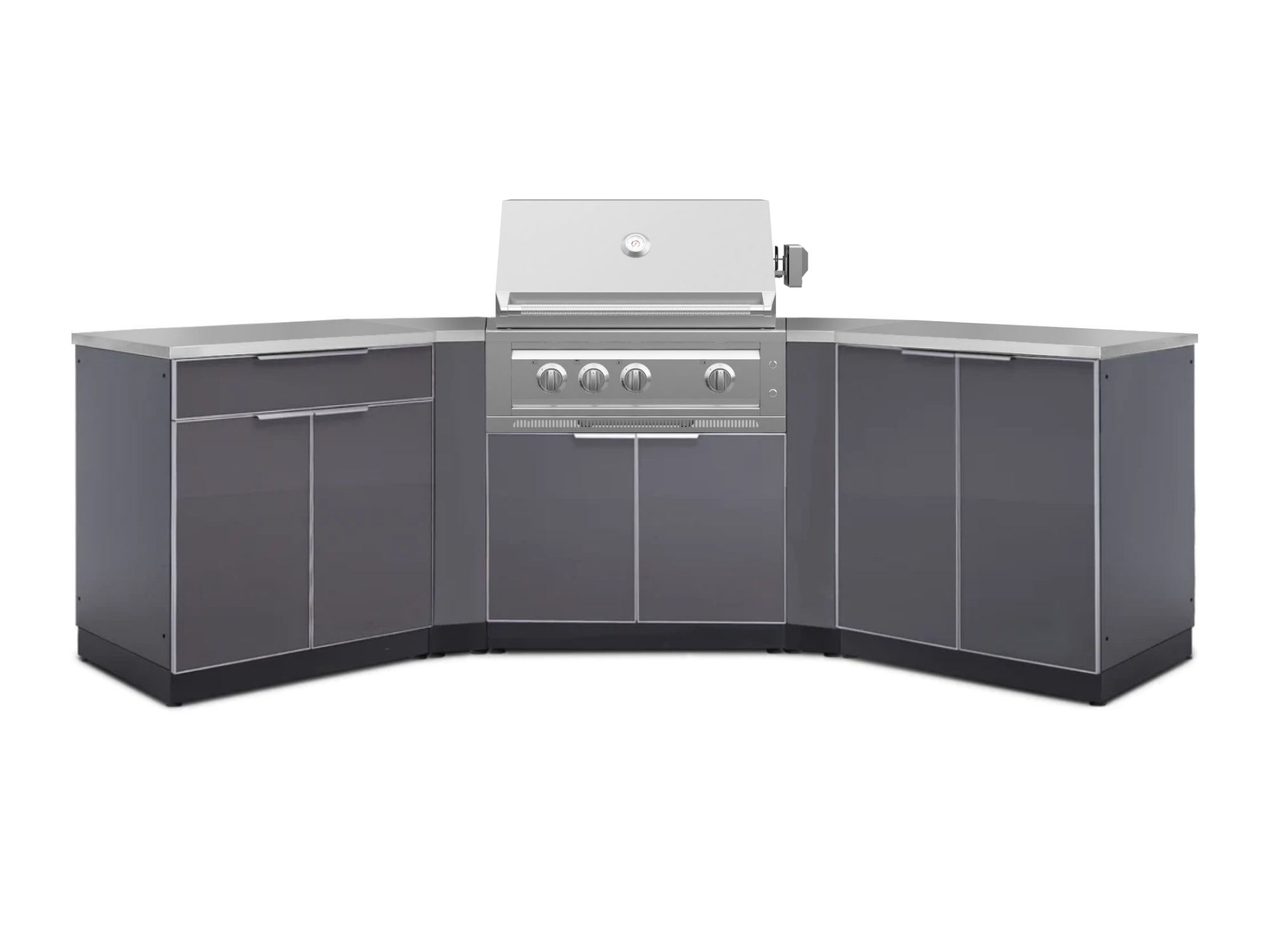 NewAge Outdoor Kitchens Aluminum 7-Piece Cabinet Set with 2 Door, Bar, Corner, Grill Cabinet, Platinum Grill, and Countertops