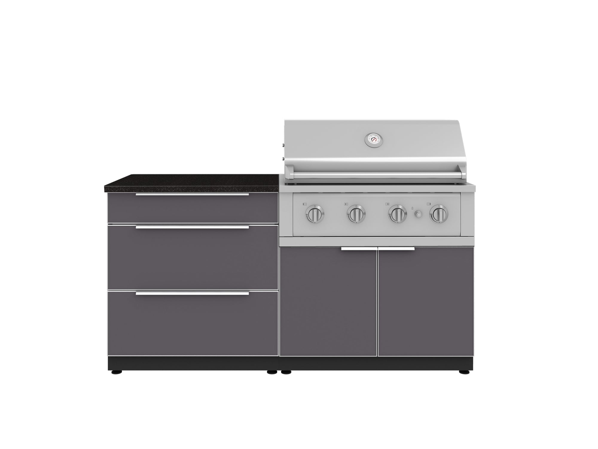 NewAge Outdoor Kitchens Aluminum 4-Piece Cabinet Set with 3 Drawer, Grill Cabinet, Platinum Grill and Countertop