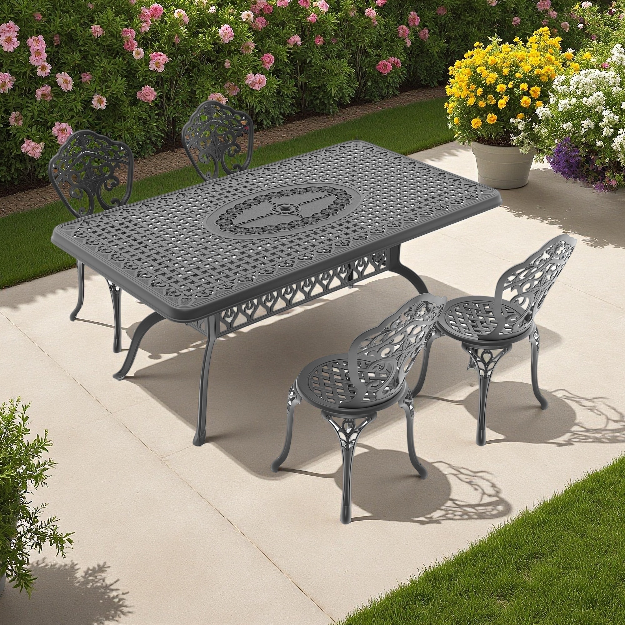 5-Piece Outdoor Aluminum Dining Set with Rectangular Table, Umbrella Hole and 4 Chairs